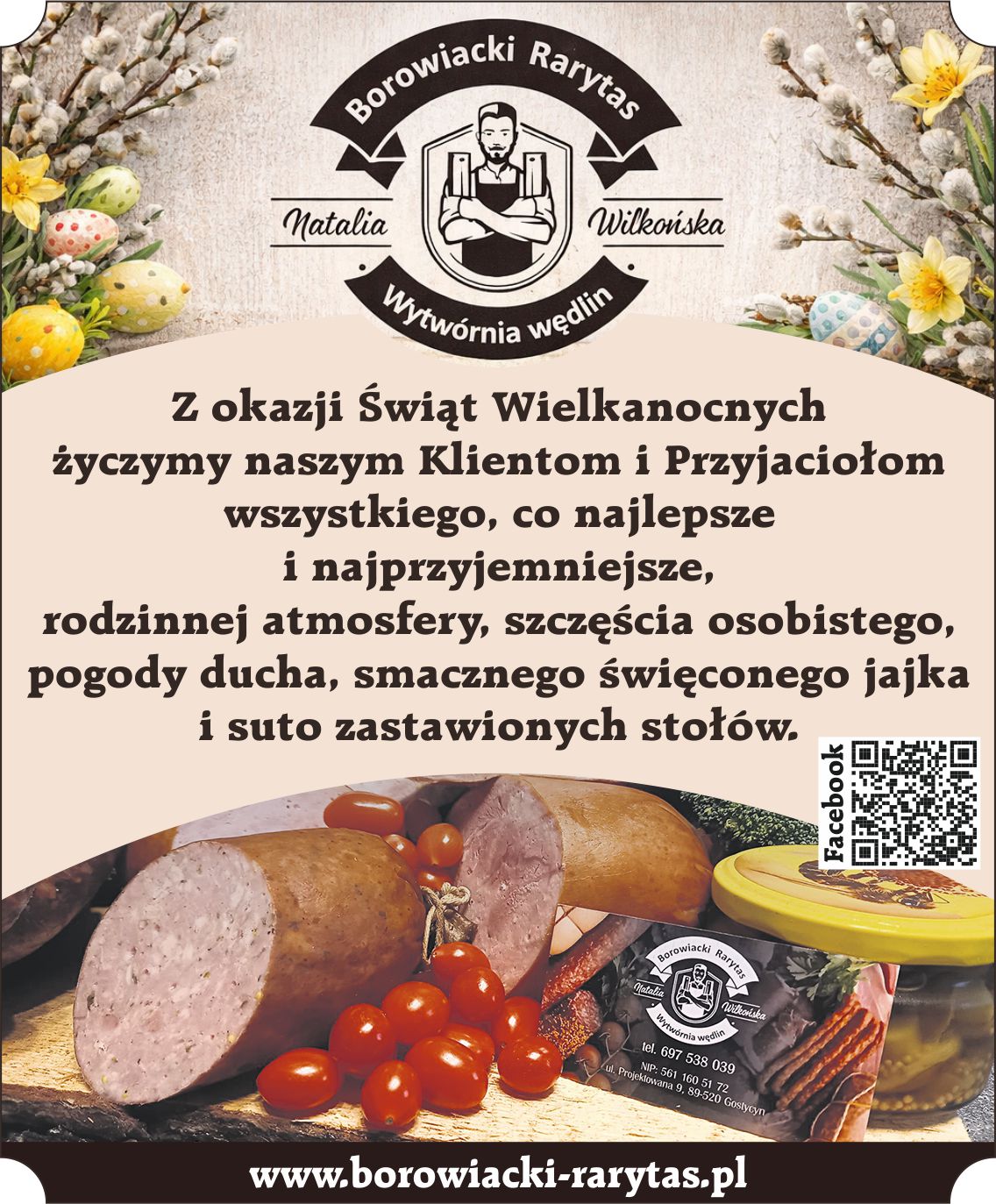 Nasze kiełbasy, pasztety i wędzonki przygotowujemy z najwyższej jakości mięsa, z naturalnymi przyprawami i tradycyjnymi metodami wędzenia — prosto z Borów dla Ciebie i Twojej rodziny.